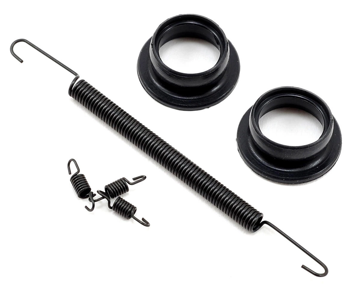 This is a replacement Dyanmite 1/8 In-Line Exhaust Rebuild Kit for .21 and .28 engines. This kit includes two gaskets, one long manifold spring and three small exhaust springs.Â