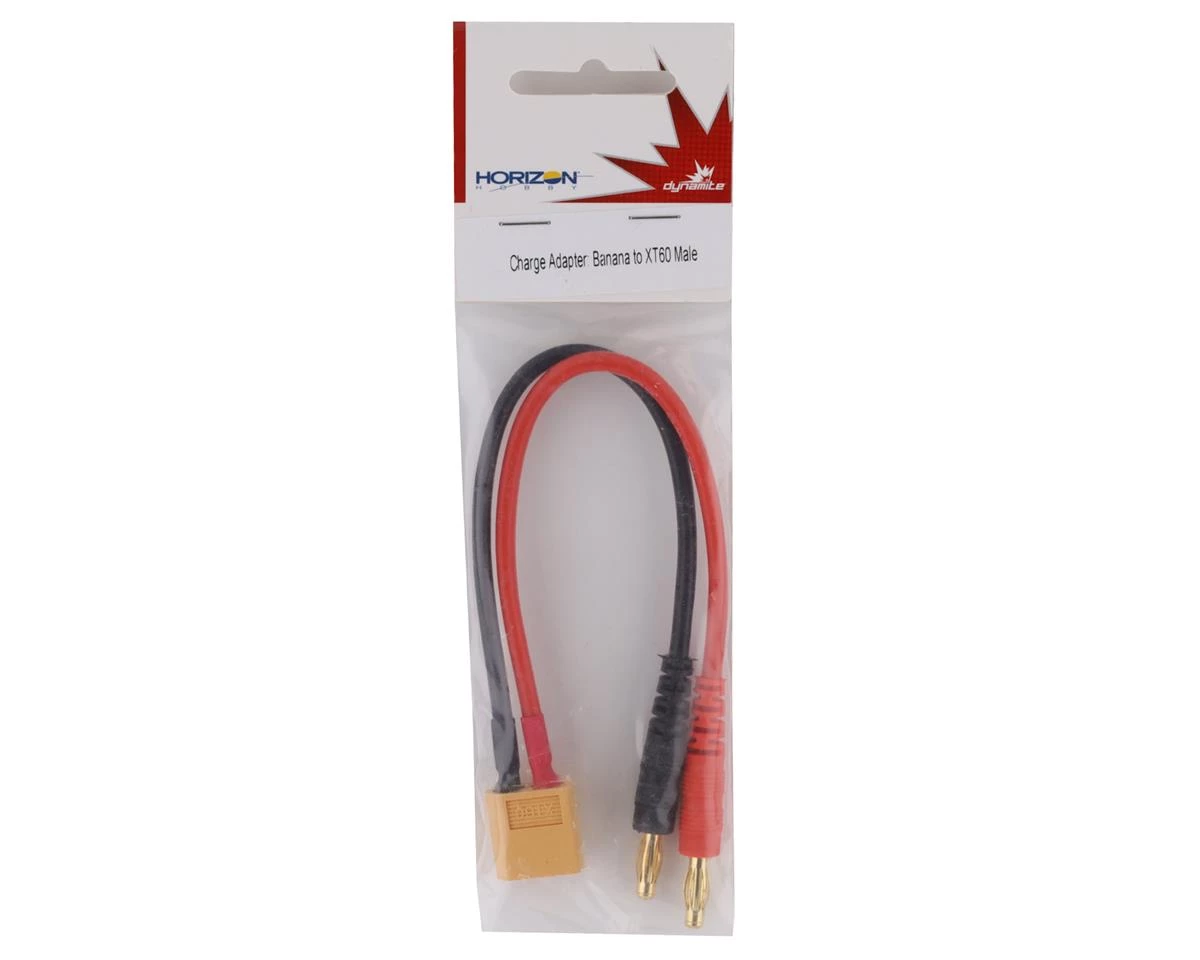 This is a Dynamite XT60 Charge Cable, built with 14AWG wiring. Features 4mm banana style bullet connectors for compatibility with most battery chargers.