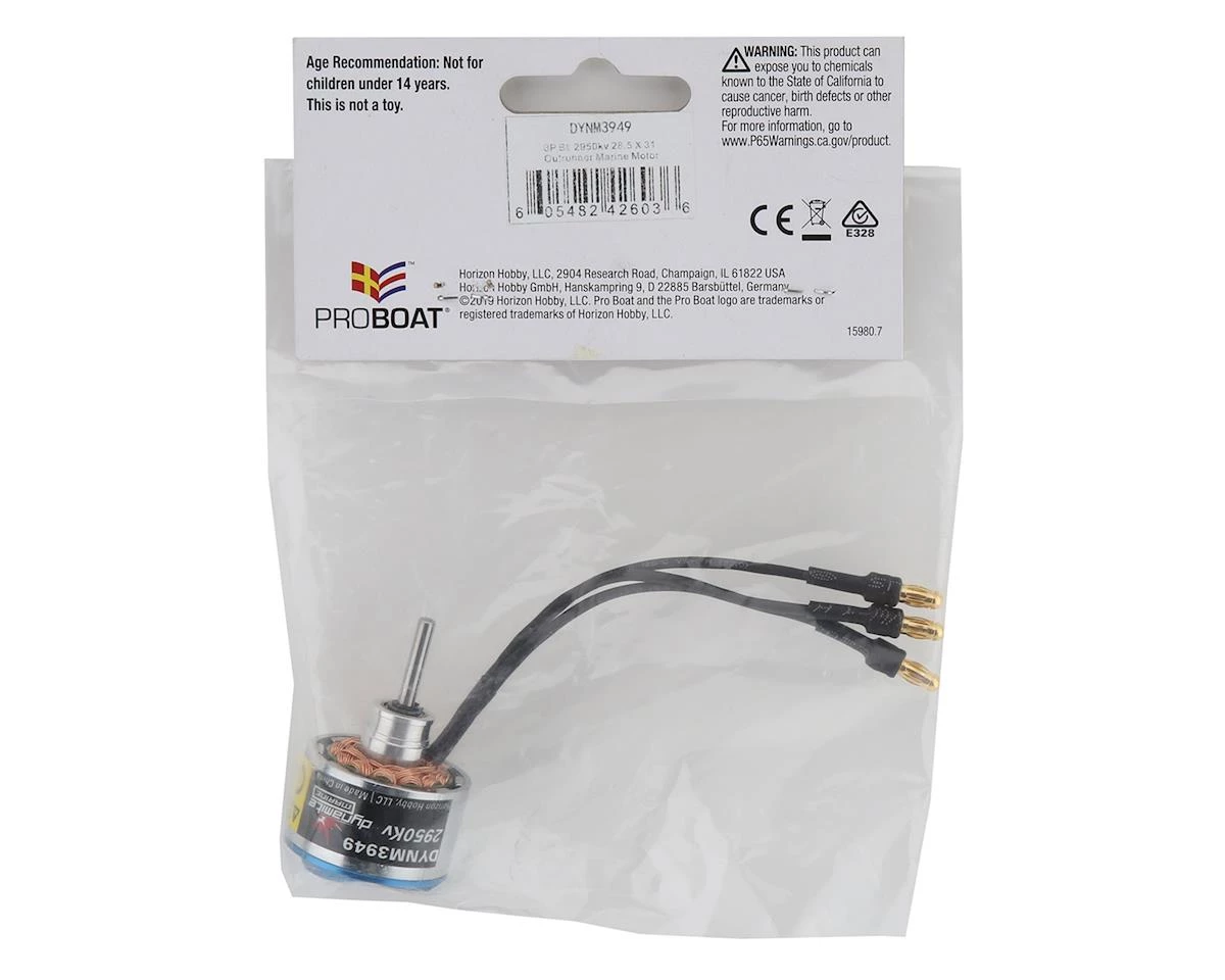 This is a Dynamite 8P BL 2950kv 28.5 X 31 Outrunner Marine Motor, intended for use with the Pro Boat 17″ Power Boat Racer Deep-V Brushless Boat.Â