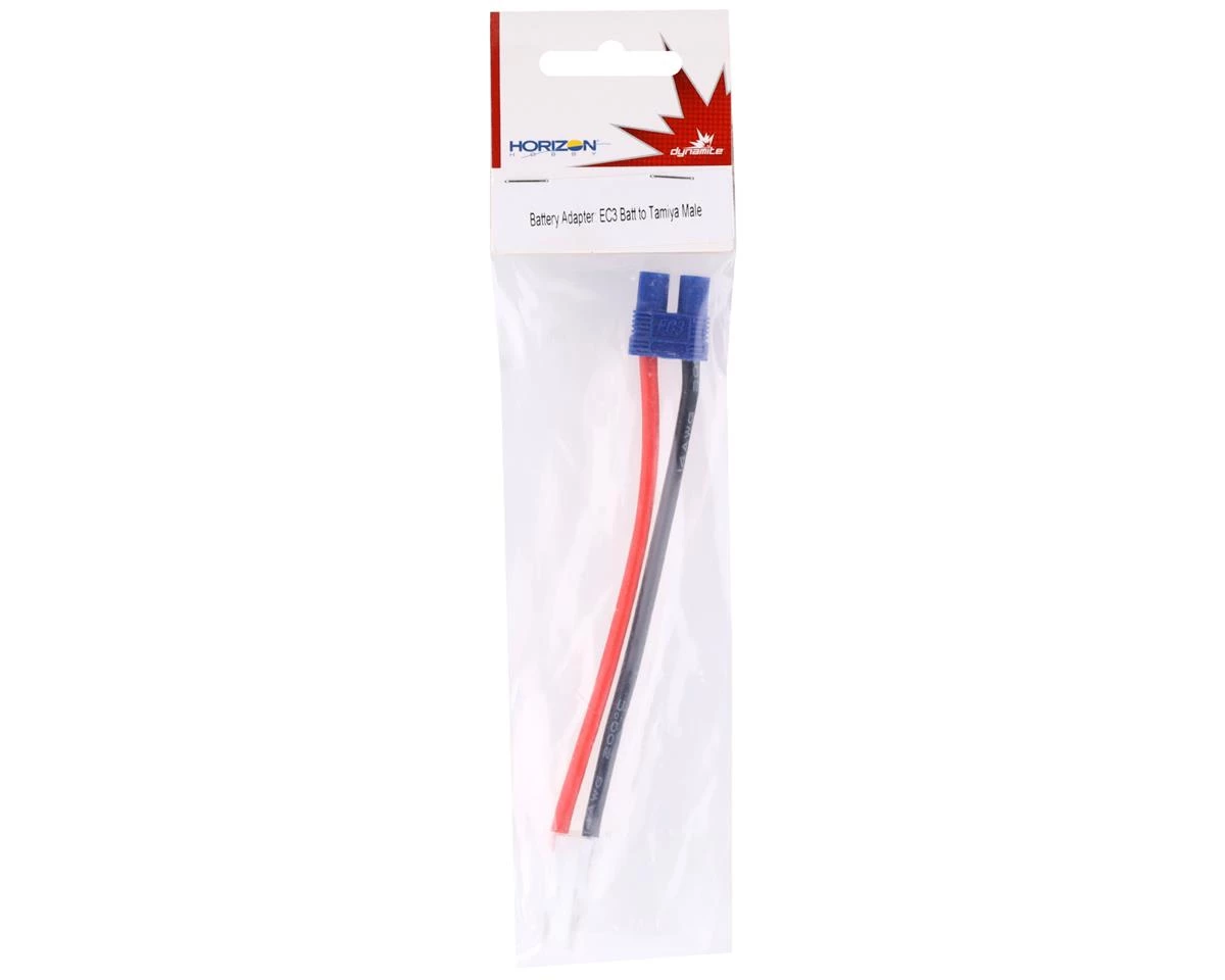 Dynamite EC3 Battery to Tamiya Male Battery Adapter. This adapter allows for a Tamiya battery to power a device requiring an EC3. Package includes one adapter.