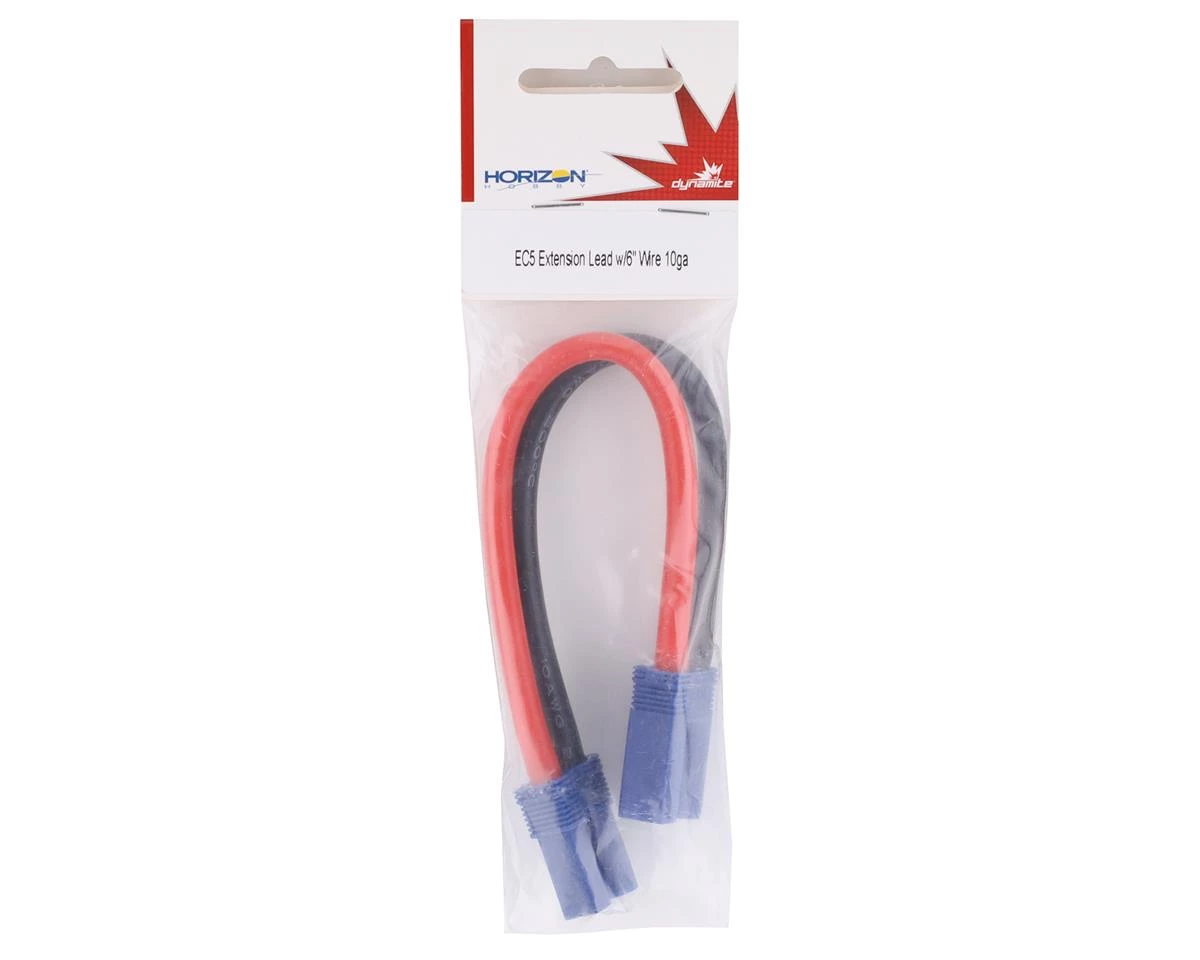 Dynamite EC5 10AWG Wire Extension Lead. This extension features a female EC5 on one side and a male EC5 on the other side. Package includes one six inch extension.