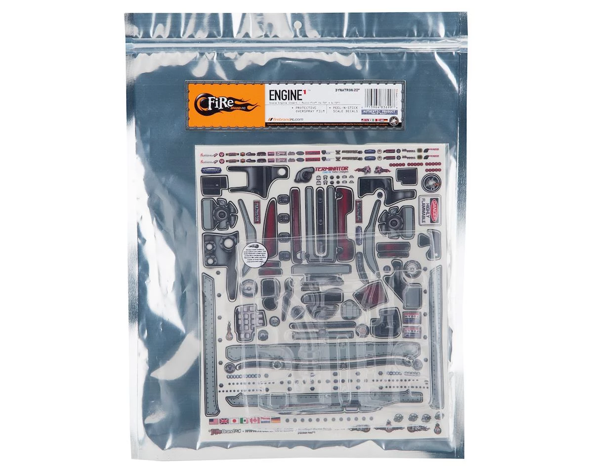 The Firebrand Dynatron 20 Engine Insert Kit is full of details. The DynaTron 20 Engine Insert transforms your stock, 1:10 scale RC body into a super-realist show-stopper! Off-road or On, express your style with this unique, lexan engine insert. Paint it chrome, gun-metal, black, silver, red, gold, whatever…it’s all up to you when you start this fun project. It begs to be tuned and tweaked too! Compliment your vehicle’s coloring and style…raise the hood and show ’em how YOU roll. Add little wires and other bits of detail for even more realism. It fits inside of your RC car or truck body’s “engine-bay” area. Hook and loop fasteners and a large, die-cut decal sheet are included. These decals also feature metallic inks.